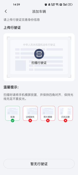 4、点击添加车辆,之后上传行驶证完成个人信息即可绑定车辆。