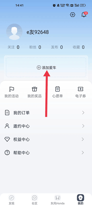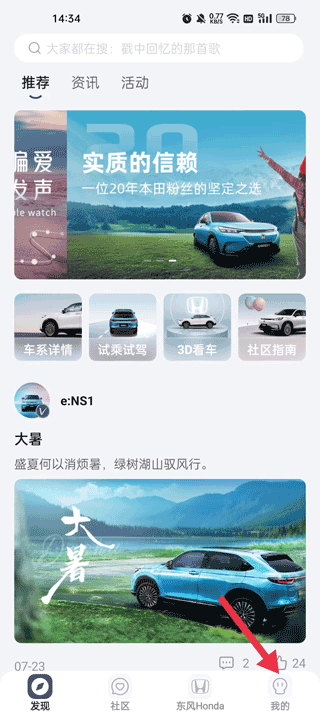 1、点击我的,进入东风本田主页找到我的点击进入;