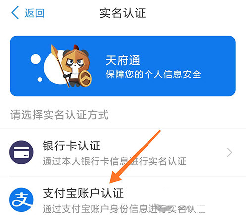 2、进入实名认证,看到两种支付方式,选择支付宝账户认证;
