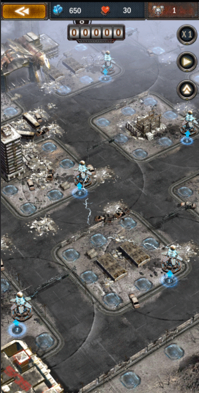 火箭塔(群伤位置),这里注意下基地的火箭炮塔在初期2关内作用不会太大,但是后续出现boss击杀后会掉落小怪的boss,基地的火箭塔等级要提升才能快速清理大量小怪