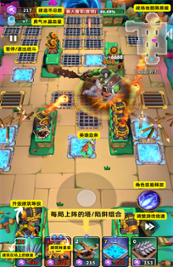 游戏内只需单手控制英雄移动走位,英雄会自动攻击怪物。消耗建造币来将高塔放置于平台上或是布置地面陷阱来完成你的塔防布局。局内击败头顶带有宝箱的怪物能够获得择的机会。根据你的战斗流派选择合适的词条,让建筑/地形/英雄三者默契配合,应对不随机词条选同的怪物——对局详情示意图。