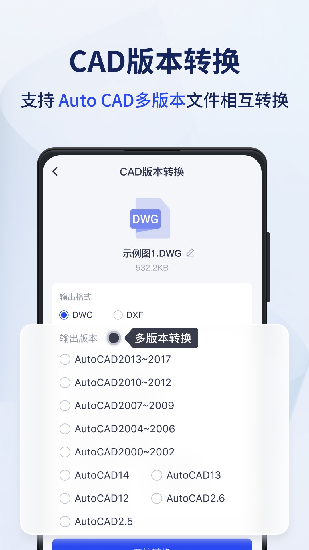支持PDF转CAD、CAD转PDF、CAD转图片、CAD版本转换等多种转换模式;
