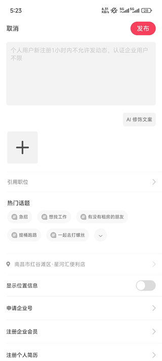 2、你可以在这输入【有没有一起去打螺丝、或者急招】点击发布即可