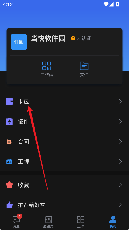 2、在功能列表中找到并点击【卡包】;