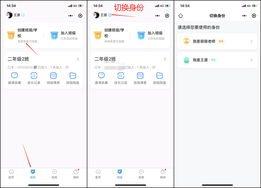 进入班级小管家-->班级-->创建班级。创建步骤可参考方式一。创建之后可以切换身份,切换之后两者互不影响。