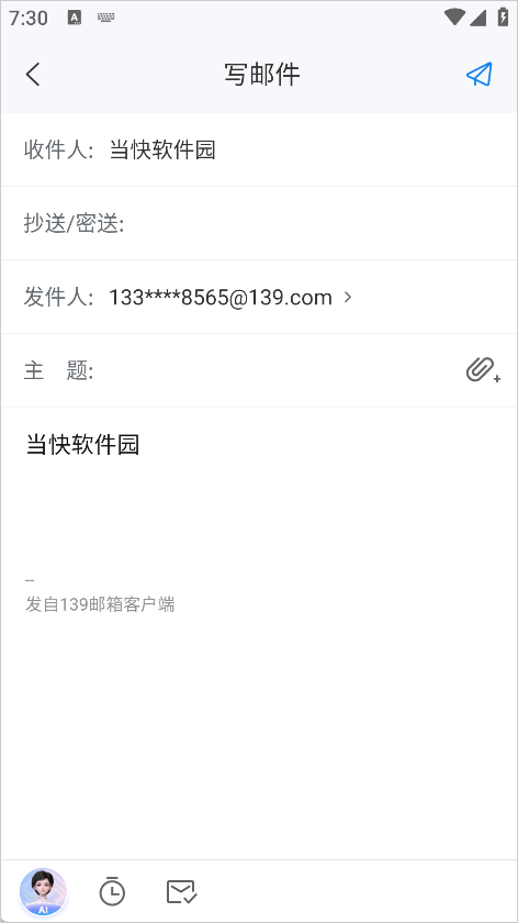 139邮箱App是一款由中国移动官方推出的多功能邮箱管理工具,融合了邮箱、云盘、智能助手与移动运营商服务于一体,支持手机、PC、短信多端收发邮件,全面满足现代办公与个人数据管理需求。其“手机号即邮箱号”的创新设计,降低了使用门槛,且具有邮件+短信双重提醒机制,确保不错过任何重要信息。作为一款智能办公应用,139邮箱支持文件云备份、微信资料存储、语音转写、资料共享群等功能,更接入DeepSeek 671B AI模型,提供智能写作、文档润色、智能问答等辅助服务,帮助用户提升办公效率,它还整合了移动话费账单服务,让通信与财务管理合二为一,构建出一个真正意义上的“智慧信息管理中枢”。