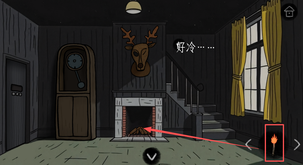 然后用火把将柴堆点燃,壁炉上鹿头的右眼会睁开