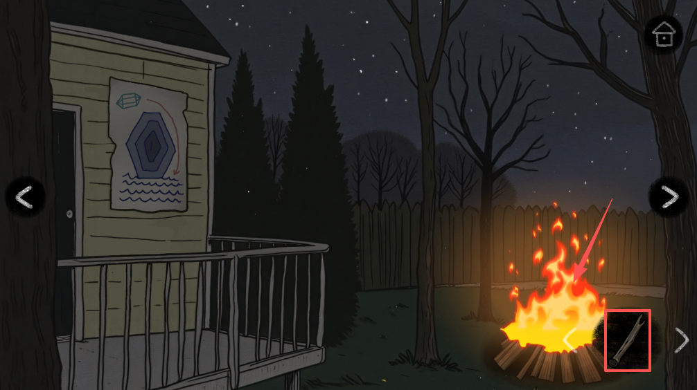 然后进入阳台,将木头放入火中得到火把