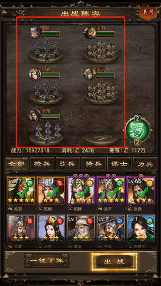 1、阵容搭配有个小细节大家需要注意,游戏中的武将本身是有系统预设位置的。比如吕布预设是前排位置,那么想把他放到后排,可以把前排位置放满,那么吕布会自动进入到后排。后排进入前排也是一样的,反过来弄就行。