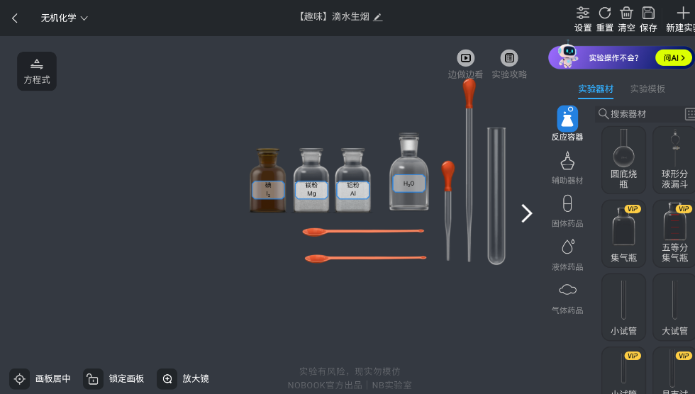同样可以自由添加试剂、装置和反应条件,探索化学反应原理,适合学生自主探究与教师演示使用。