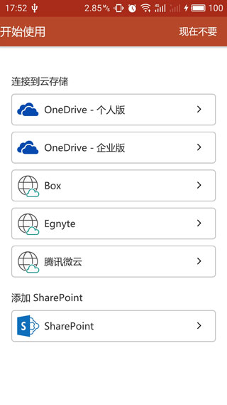 1、安装并打开 Microsoft PowerPoint手机版,首先连接云存储