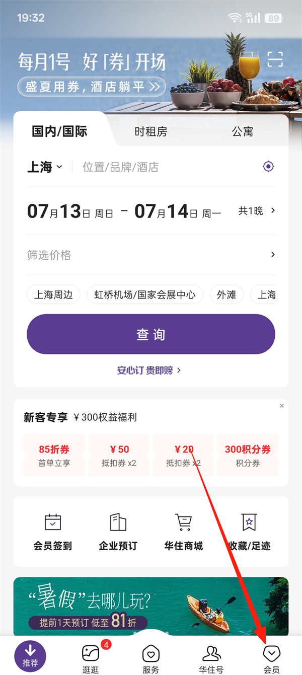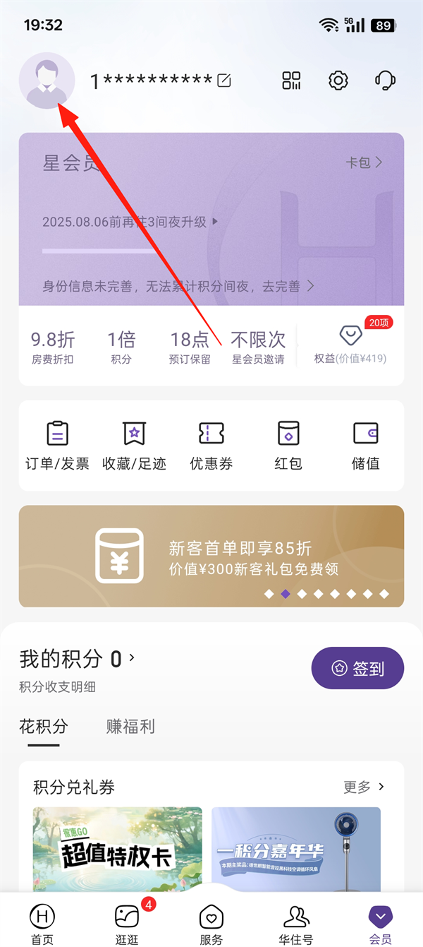 1、打开华住会App,点击【会员】