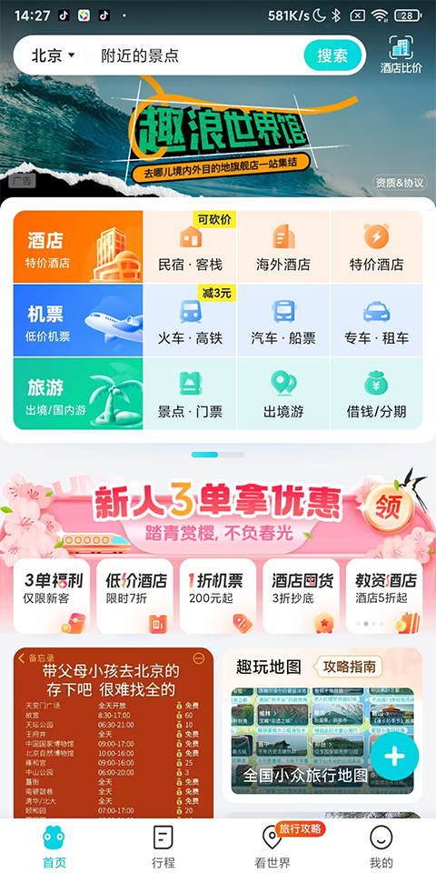 去哪儿是中国领先的一站式旅行平台,坚持以低价为核心竞争力,深受年轻人喜爱。