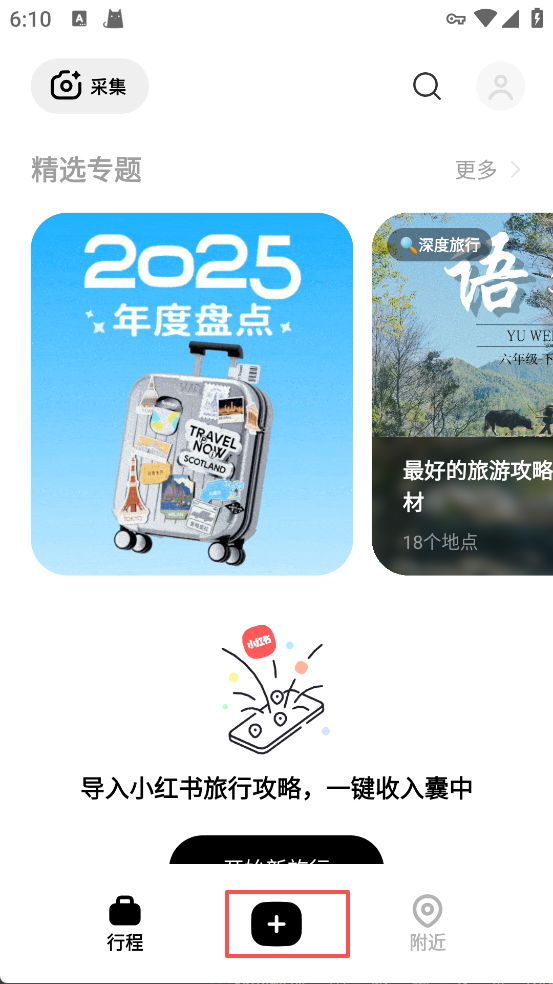 1、打开周旅迹App后,点击底部中间的“+”按钮