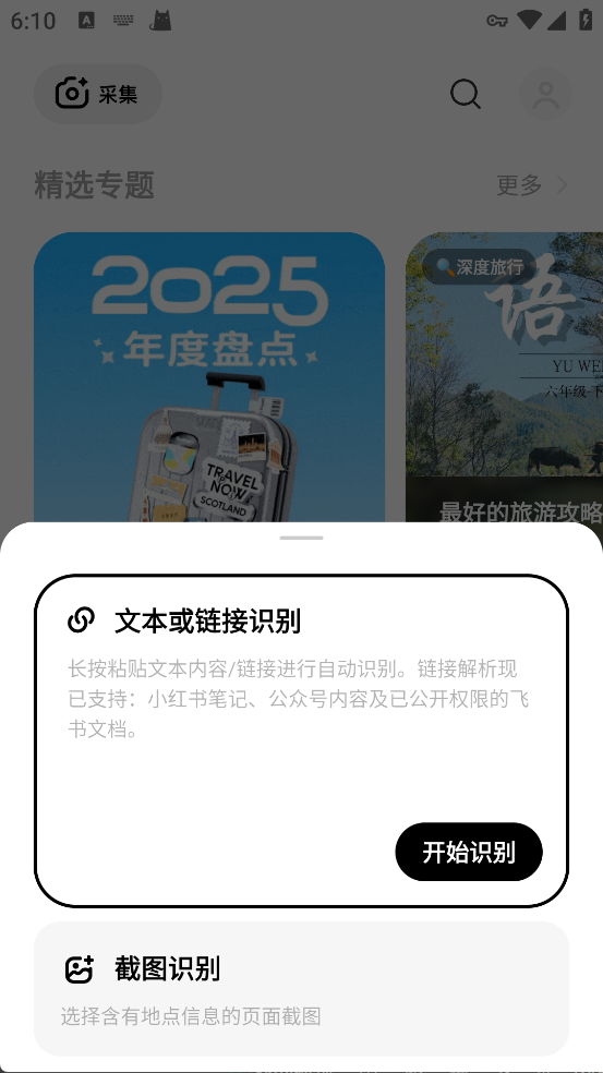 若用链接/文本:选“文本或链接识别”,粘贴内容后点“开始识别”