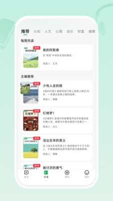有书共读是专为阅读爱好者打造的知识平台,集图书阅读、内容解读、共读交流于一体,沉浸感拉满。平台覆盖自我成长、心理、财富、健康、家庭等全领域图书,兼顾自主阅读与专业领读视频,支持好友共读互动,精准适配不同用户的阅读需求,让阅读更具趣味性与实用性。