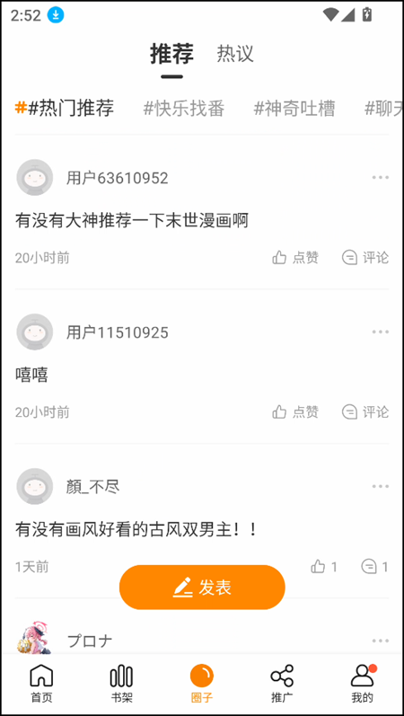 3、如果你是那种不吐槽不痛快的“漫友”,那一定要去“圈子”里转转。无论是发帖求番、快乐安利,还是犀利吐槽,这里聚集了各路大神和知音,让你的追漫旅程不再孤单。