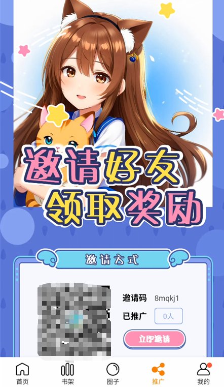 4、想让阅读更清净?在“推广”界面下,你可以尝试把这款宝藏软件分享给更多小伙伴。通过简单的推广操作,你就能赢取专属的去广告福利,享受更沉浸、无打扰的漫画世界。