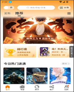 1、软件首页设更新、推荐、排行榜等板块,分类清晰,用户可快速浏览最新漫画、热门推荐及人气榜单。